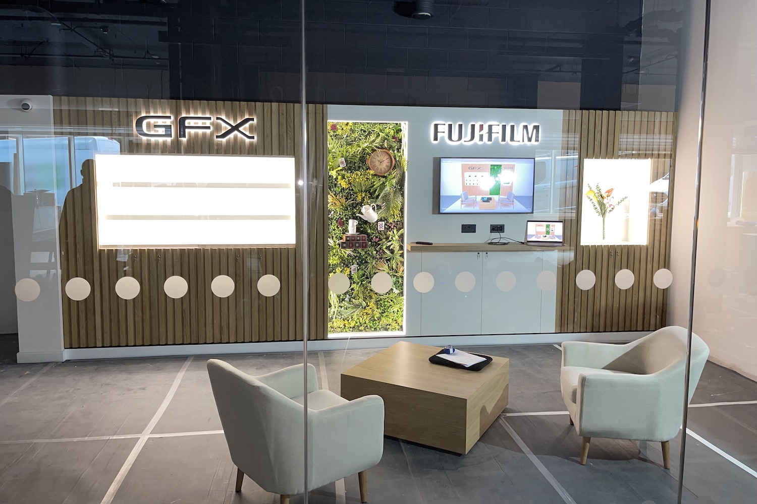 Wex Photo Video have a longstanding partnership with Fujifilm UK, promoting and retailing their photographic equipment. We were asked to supply and install a joinery piece to promote products from the premium GFX range for Wex Glasgow. This range of digital camera’s is aimed at professional photographer’s and combines outstanding resolution with exceptional tones, advanced colour reproduction and high performance lenses. Our task was to produce a finished joinery piece worthy of a camera that can justifiably claim to offer up the worlds best image quality to award winning and aspiring professional photographer’s!